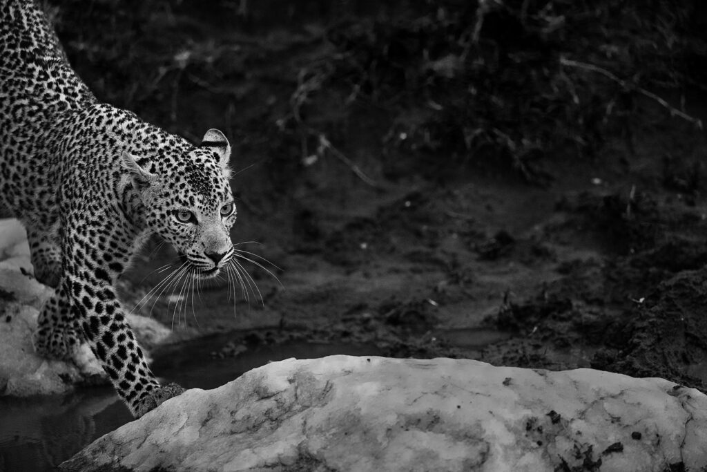 I was on two safaris with Vicki Jauron this past season. During the first one, I sat and observed more moments than I photographed. I struggled to feel inspired to click the shutter. Before our next safari, she showed me a collection of images she had edited, and they were exquisite, particularly the ones in black and white. It occurred to me that I should try shooting in black and white, which is precisely what I did, and it changed how I saw my subjects. Over the years, behavior and scenes that had become ordinary took on a fresh artistic appeal. In color, the images below probably would not have sparked my interest enough to click the shutter, but viewing the action in black and white took on a whole new appeal.