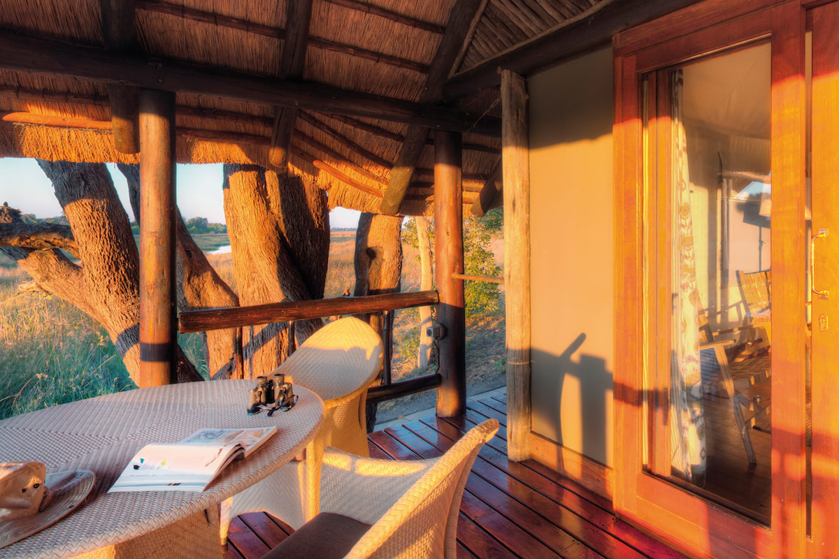 You will stay at the five-star Savute Elephant camp, with 12 luxurious rooms raised on wooden platforms, each with an outdoor lounge shaded by a traditional thatch roof.